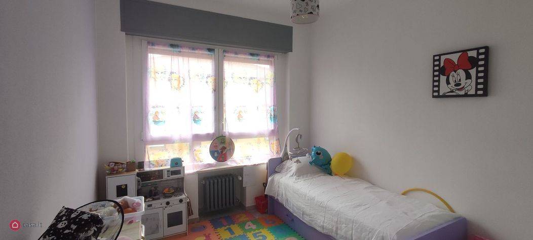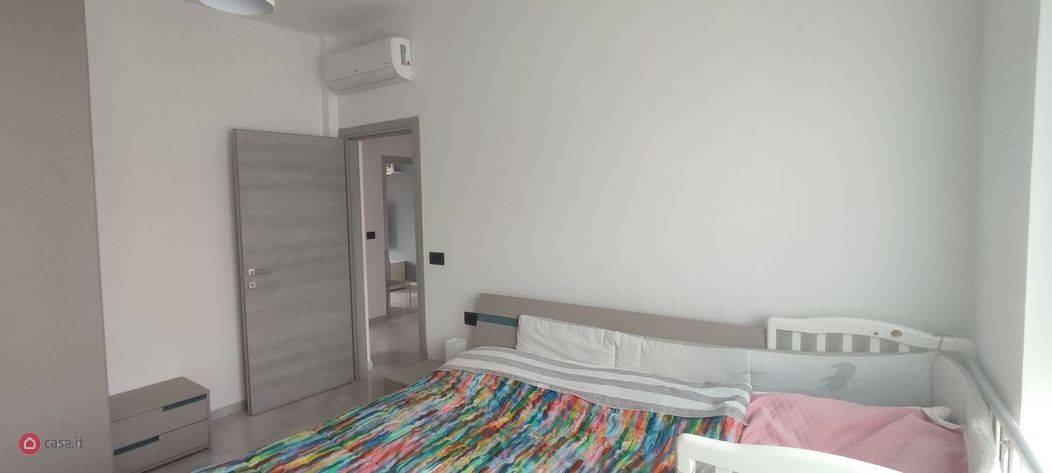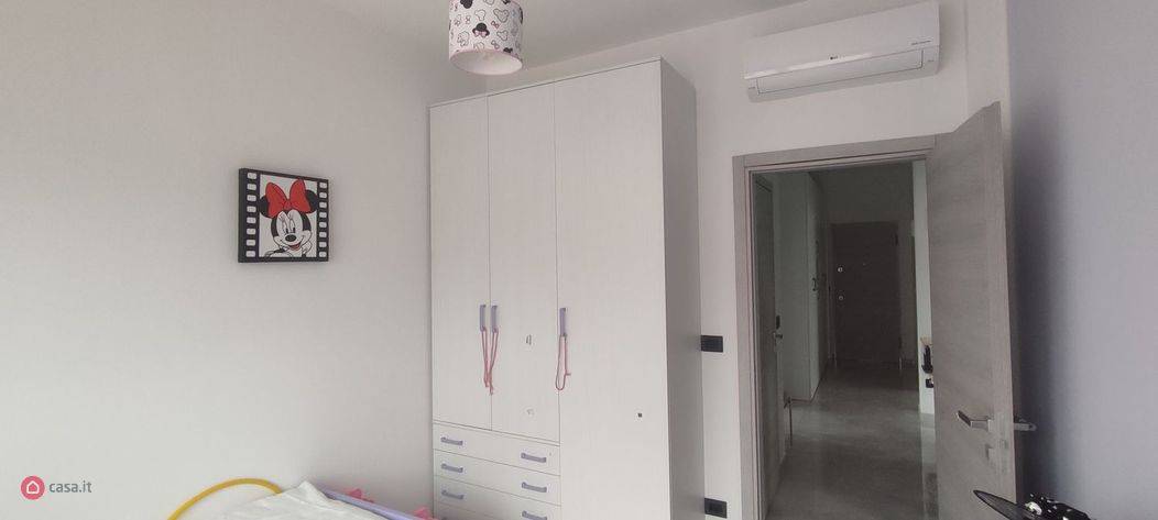 L'immobile, con una superficie totale di 110 metri quadrati, è composto da un ingresso, un ampio soggiorno con angolo cottura, tre camere da letto, ripostiglio e doppi servizi finestrati.