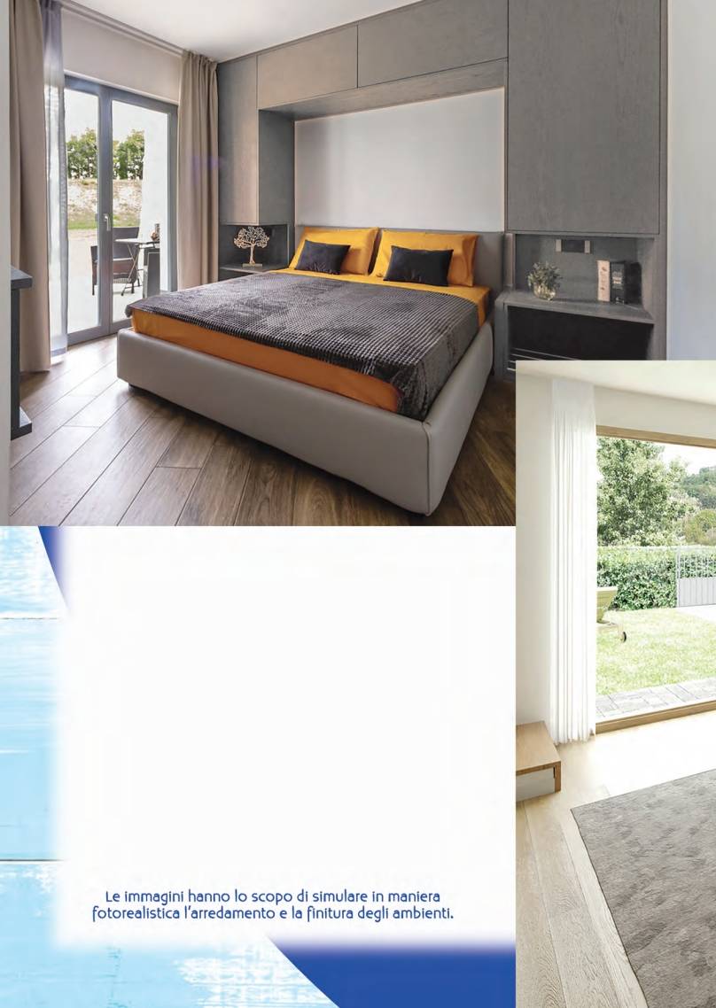 Gli alloggi si presentano con finiture di alta qualità, realizzati con alto livello tecnico e tecnologico con infissi in PVC che garantiscono un'ottima isolamento termico e acustico.