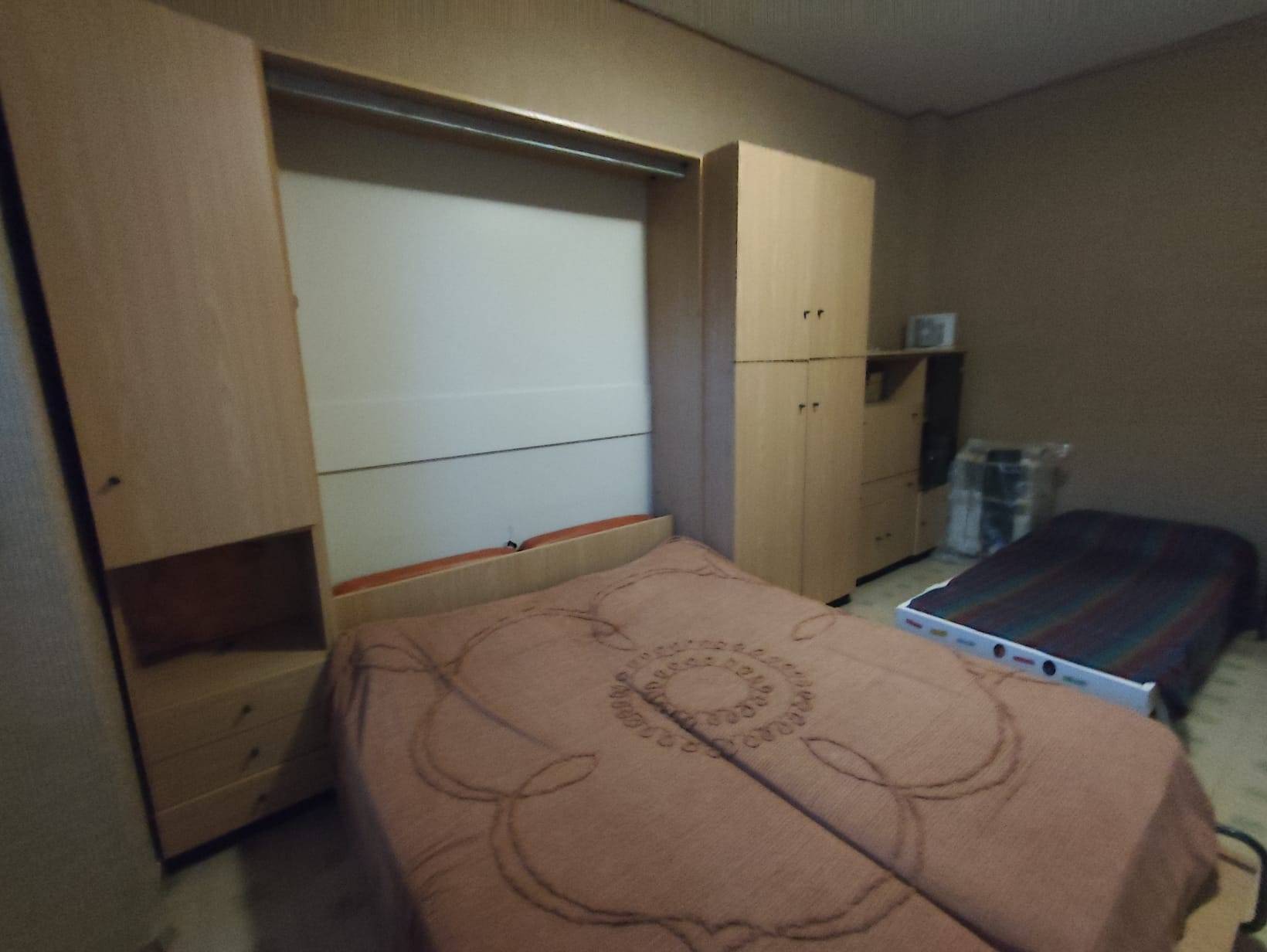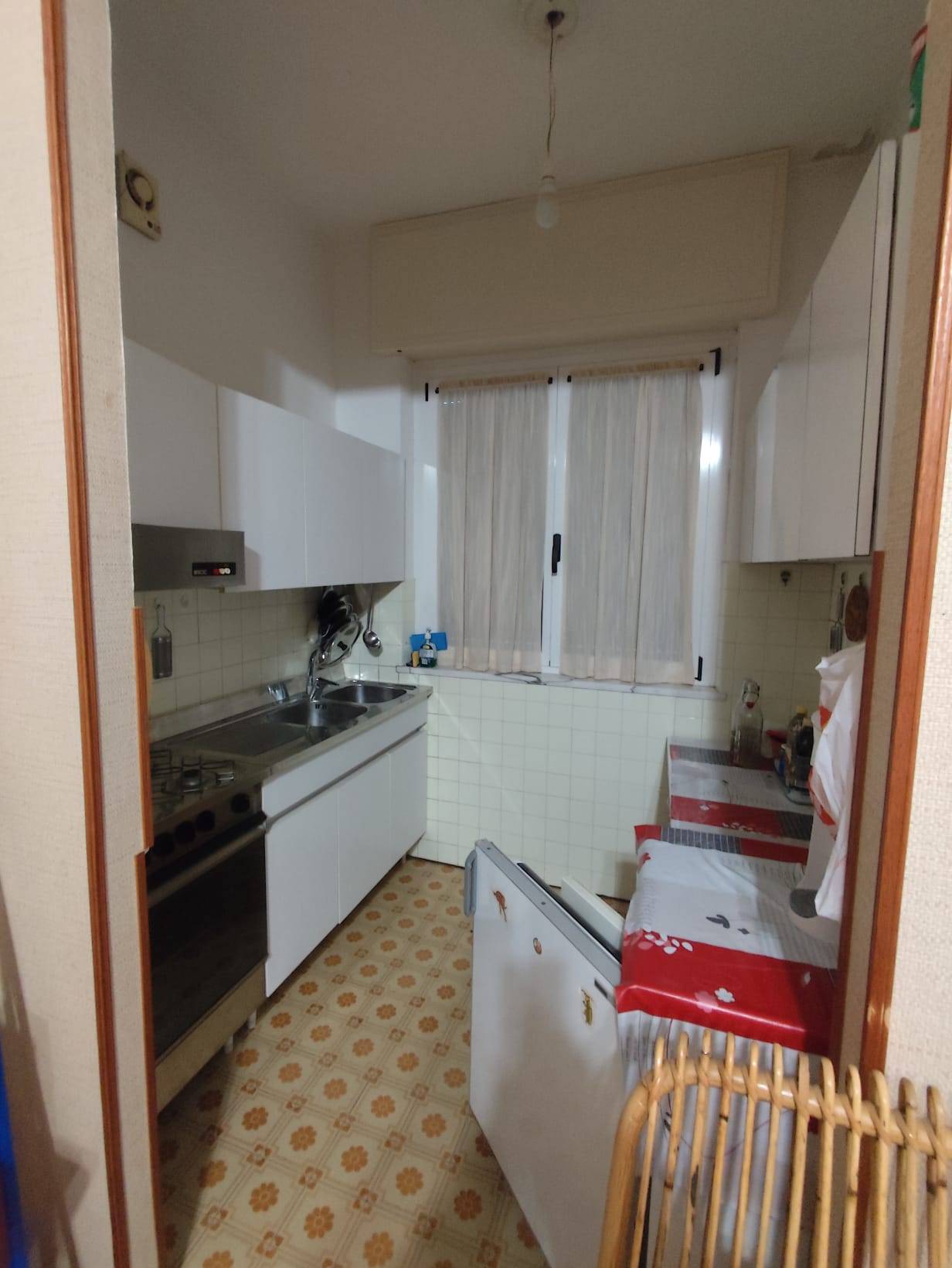 L'alloggio è composto da tre locali: ingresso, tinello con cucinino, due camere matrimoniali e un bagno.