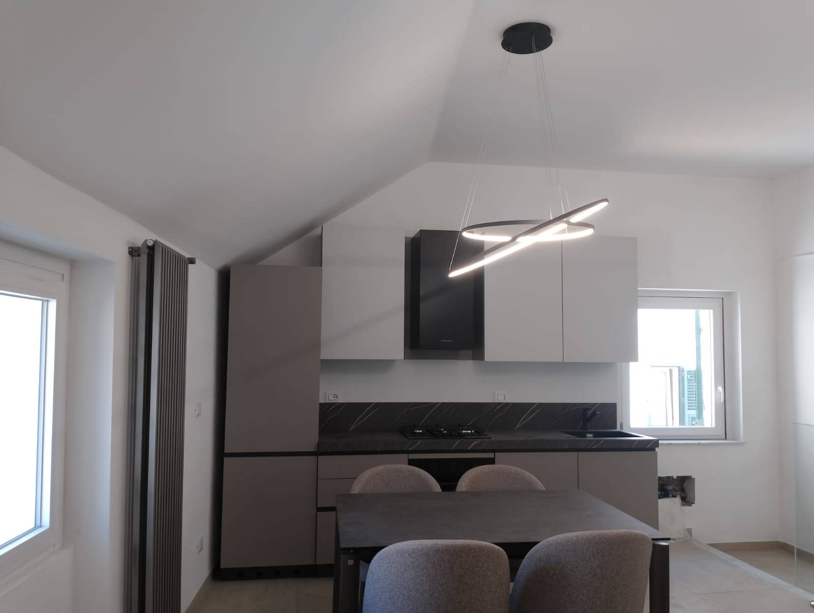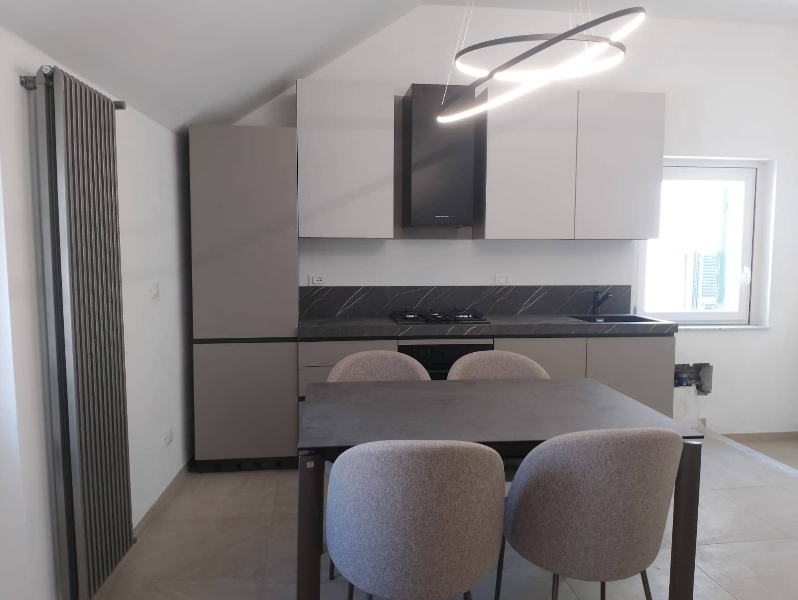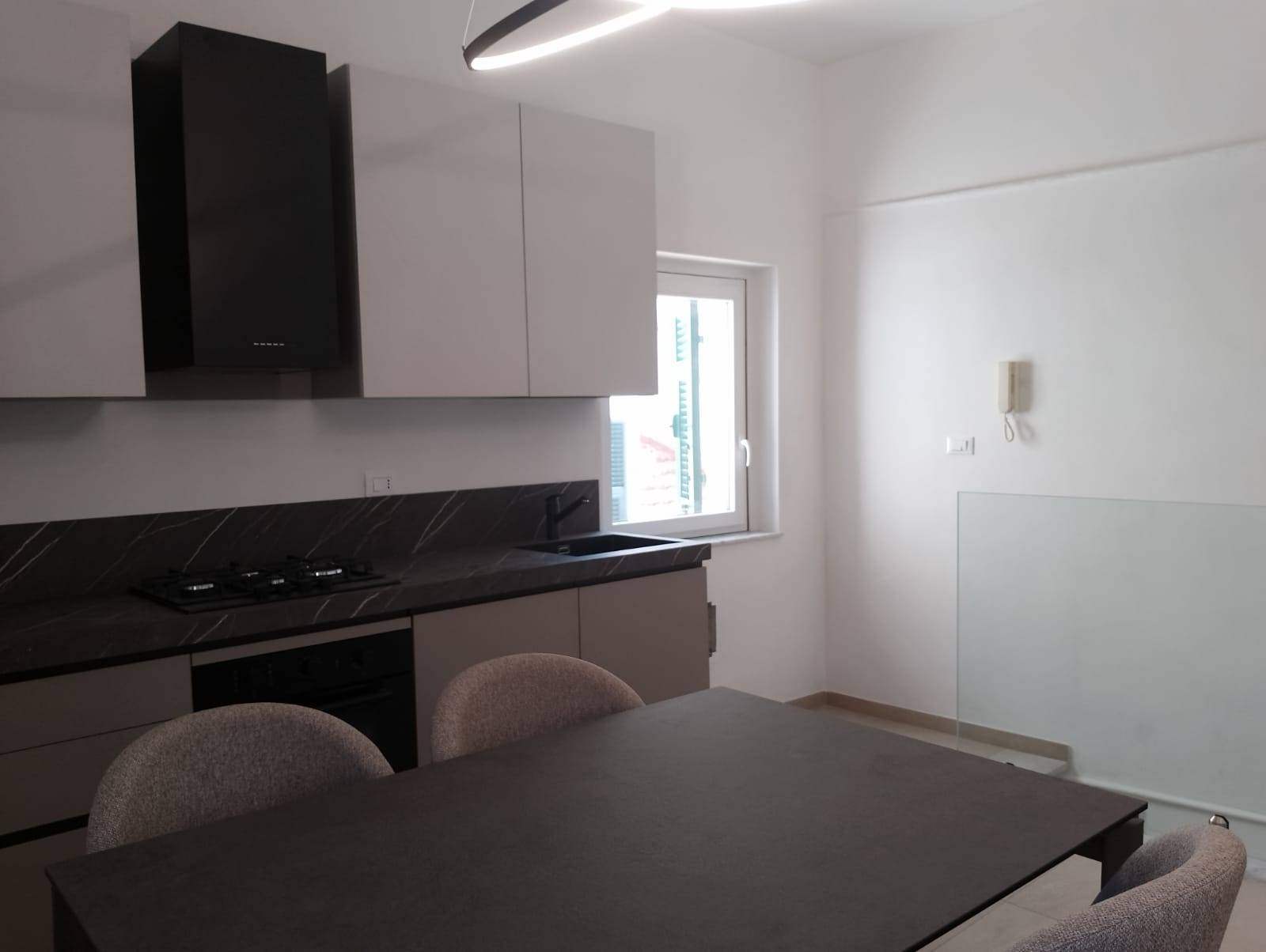 L'Appartamento é suddiviso in tre locali, di cui un ampio e luminoso soggiorno con cucina a vista , due camere da letto e un bagno finestrato.