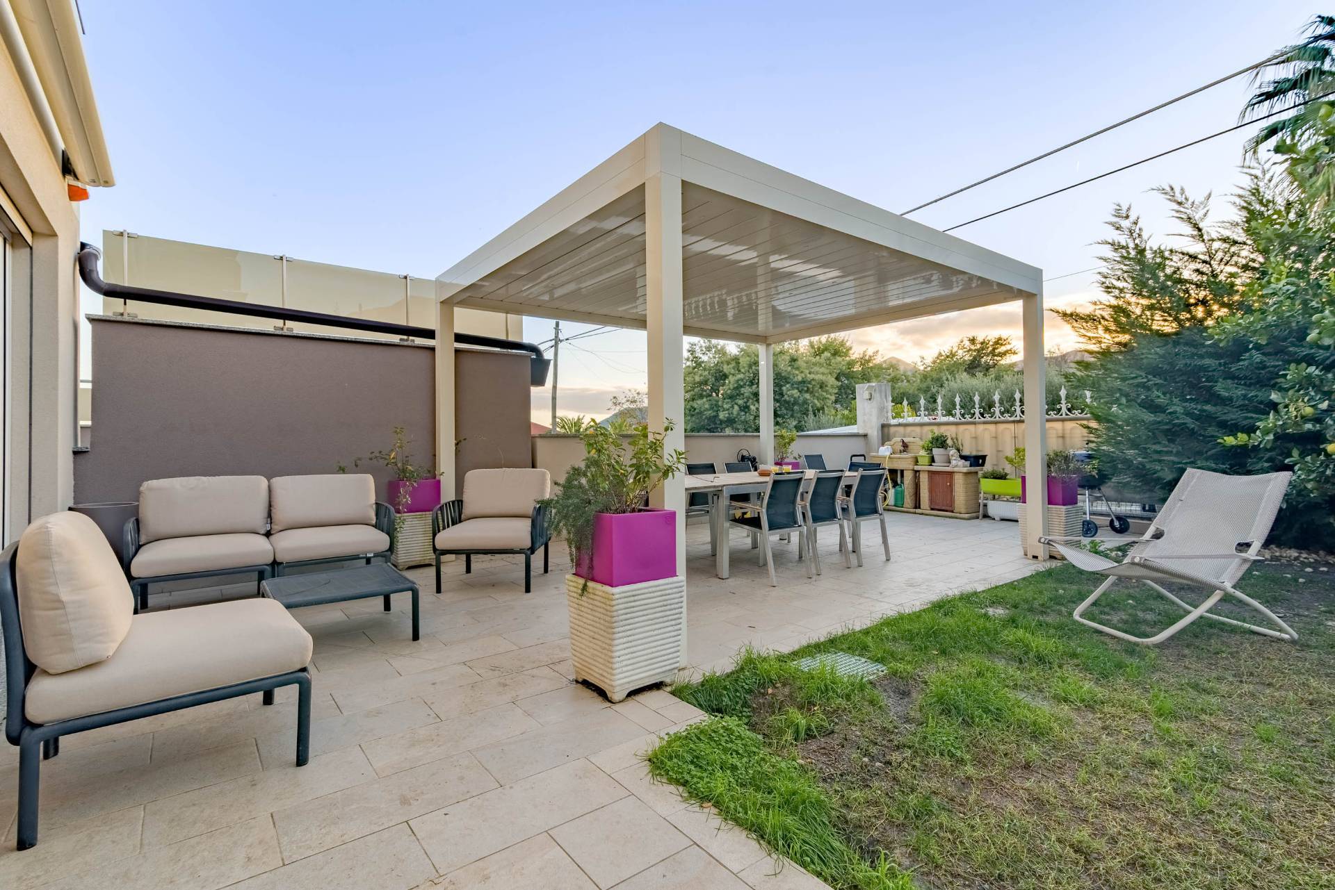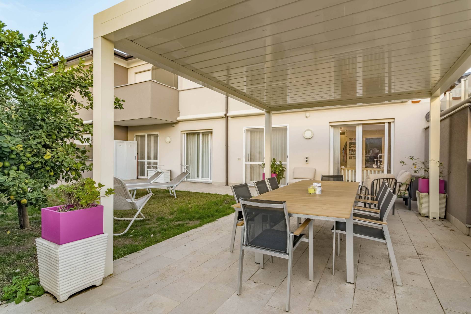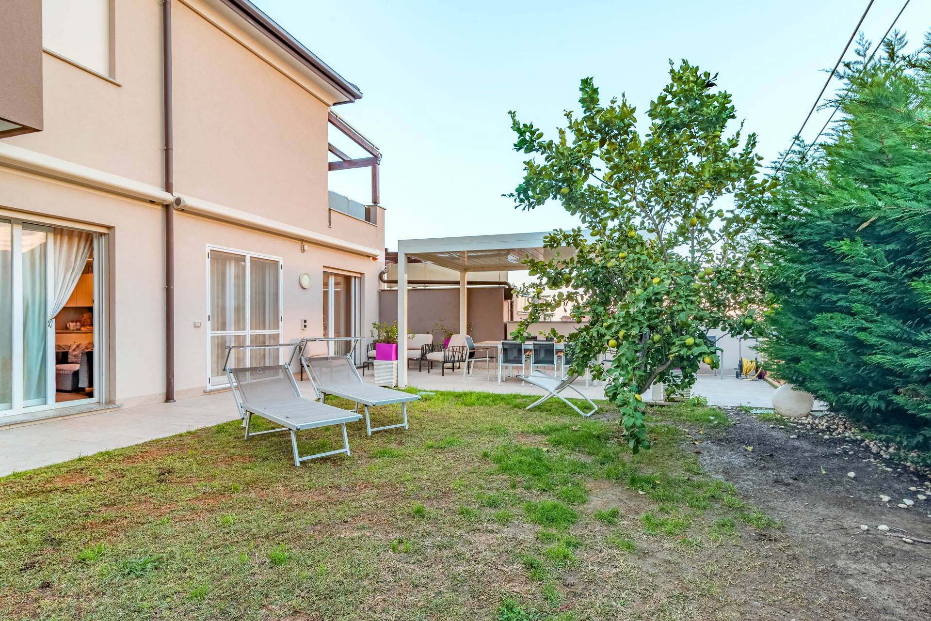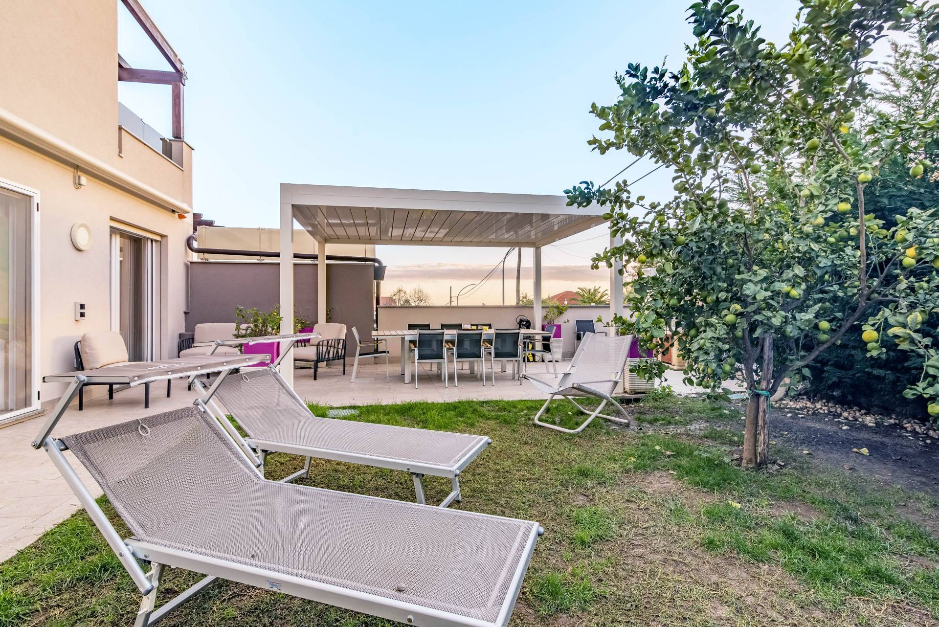 Il giardino privato offre un'ulteriore opportunità per godere di momenti di relax e organizzare cene e feste all' aria aperta.