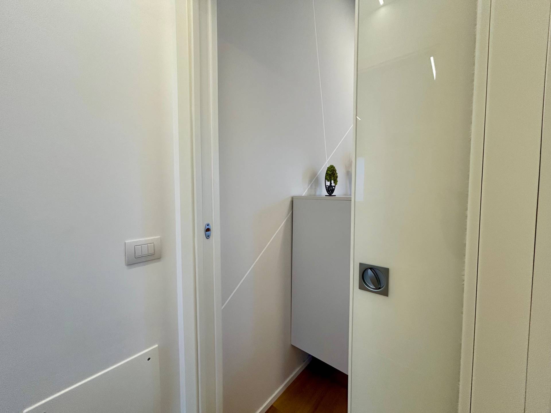 La soluzione dispone anche di un posto auto privato con accesso da sbarra automatica.